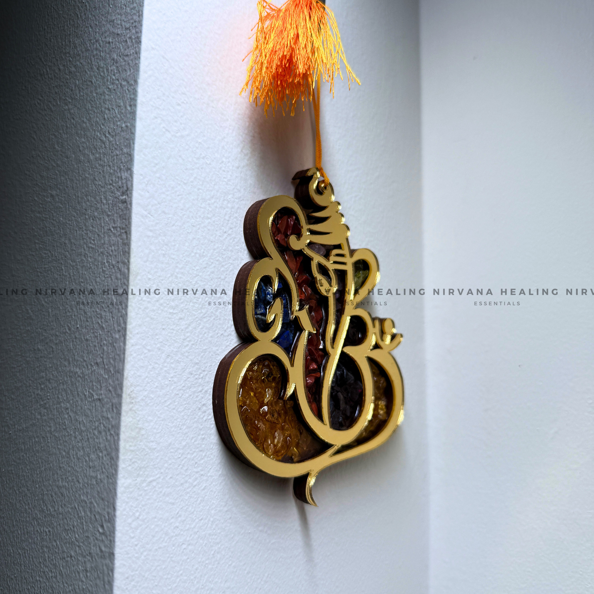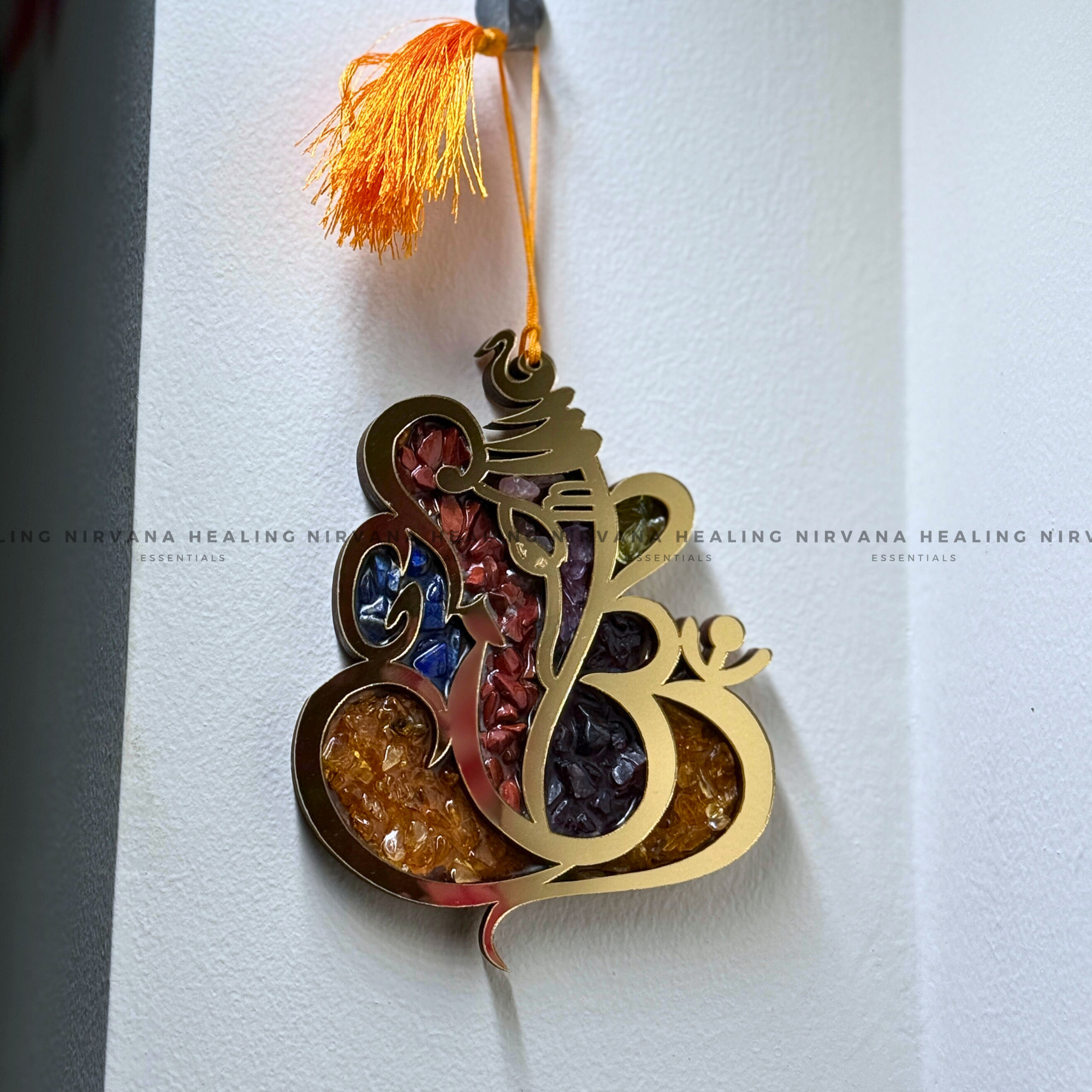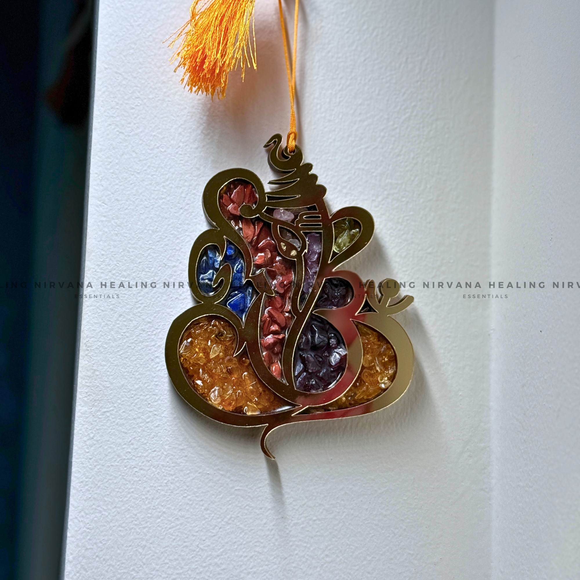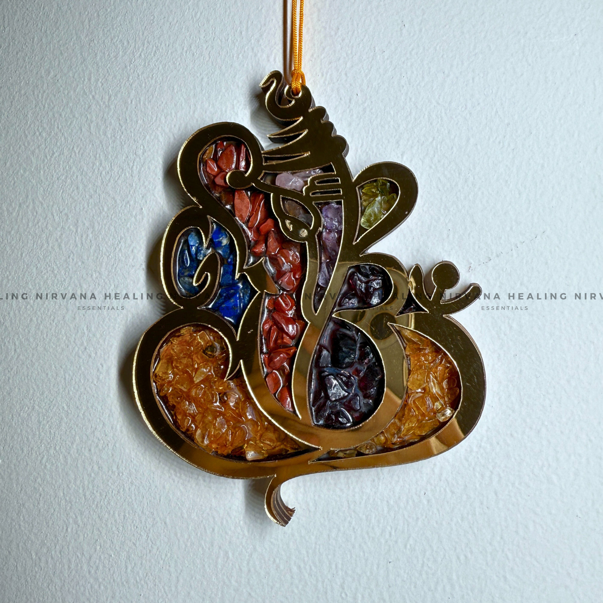 GANESHA SEVEN CHAKRA WALL HANGING WITH CRYSTAL CHIPS