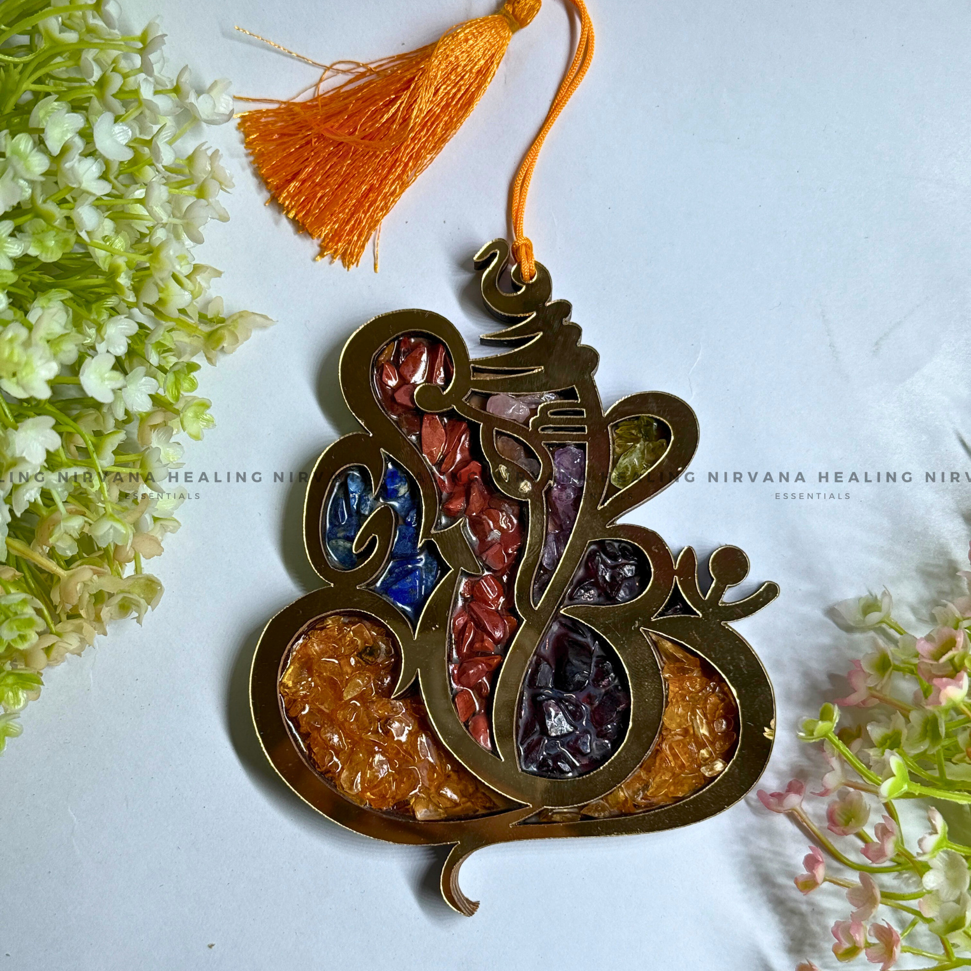 The Seven Chakra stones align the body’s energy centers, while Ganesha’s divine presence brings success, abundance, and peace. The addition of natural crystal chips amplifies healing vibrations and attracts good fortune into your space.