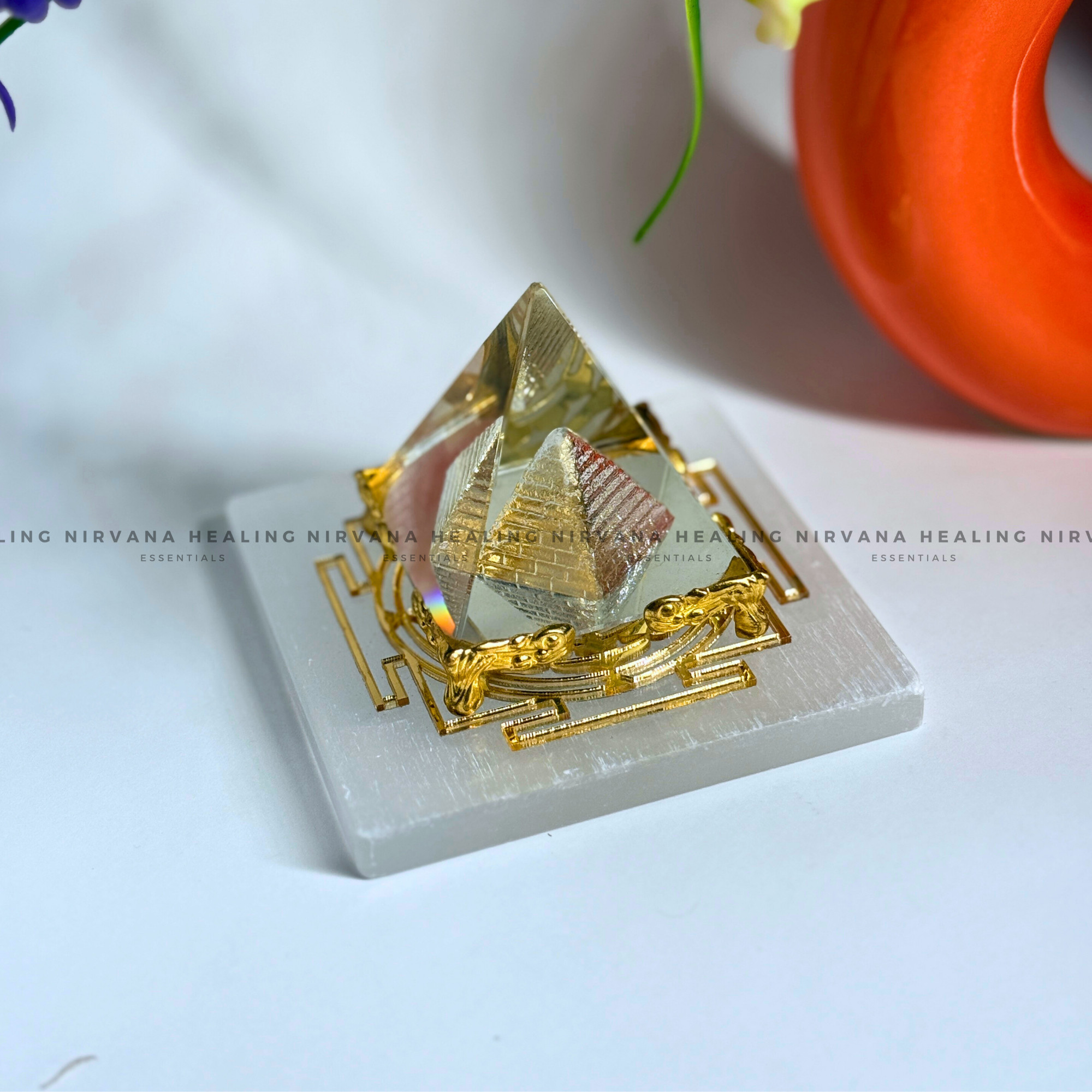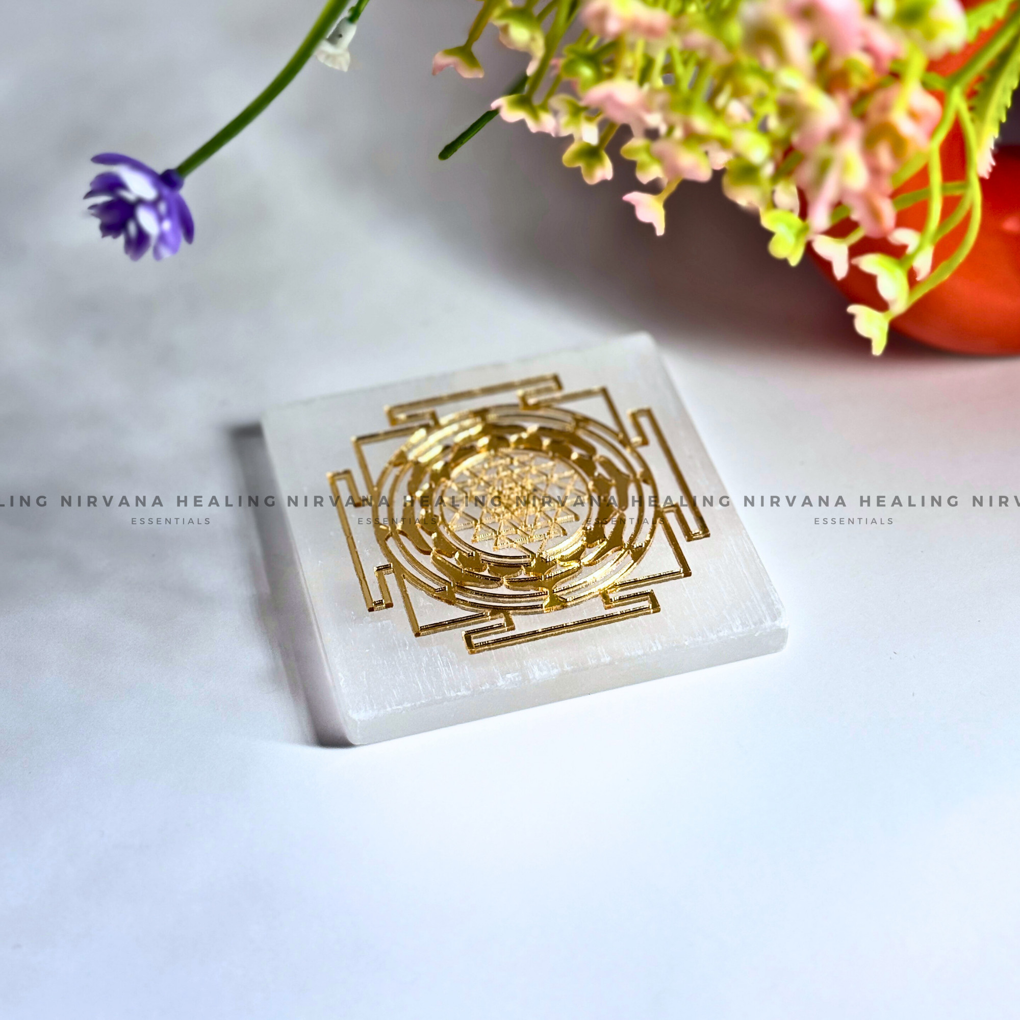 Activate abundance and divine alignment with the Selenite Golden Shree Yantra Charging Plate. Featuring the sacred Shree Yantra etched in radiant gold on high-vibration selenite, this charging plate is a powerful conduit for prosperity, spiritual growth, and energetic cleansing. Ideal for crystal charging, manifestation rituals, and wealth attraction. Clear. Align. Manifest with divine geometry.