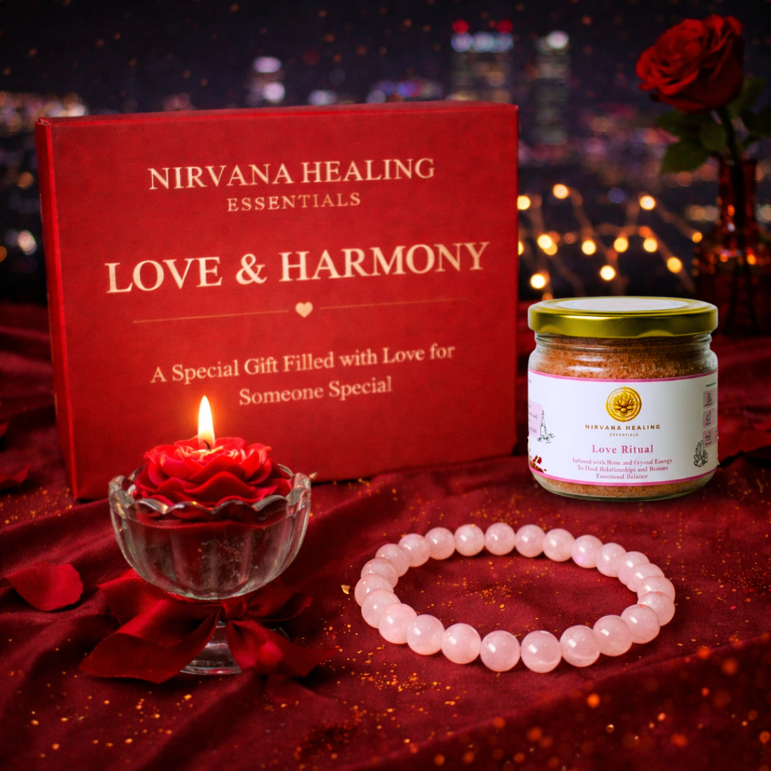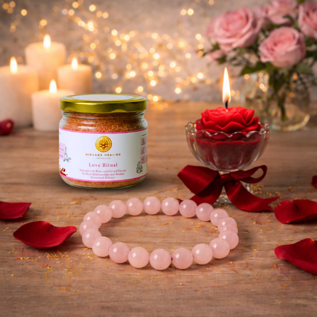 The Special Ritual Combo is thoughtfully curated to celebrate love, care, and meaningful moments. This premium set combines calming self-care, gentle crystal energy, and a soft candle glow—making it ideal for romantic gifting or personal rituals.